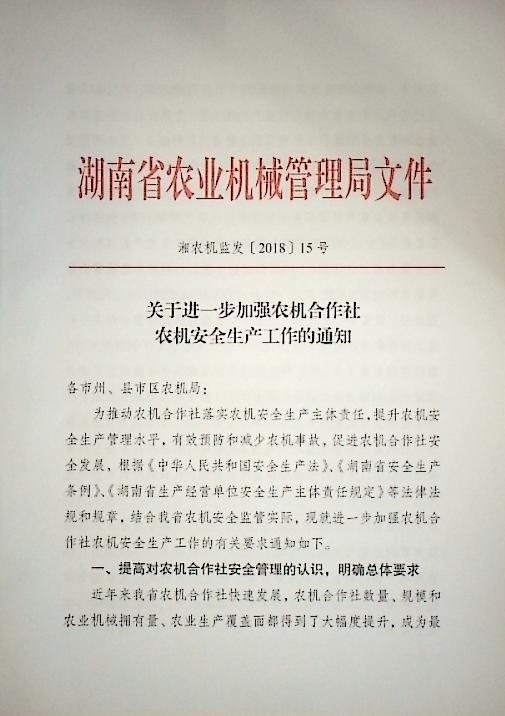 关于转发省农机监理总站《关于进一步加强农机合作社农机安全生产的通知》
